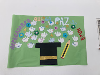 El 30 de enero , celebramos en el cole el día de la Paz.Los alumnos de Infantil , realizaron una corona con una paloma y jugaron al corro del cariño . Los de primaria trabajaron sobre : " El lápiz mágico de Malala ", finalizando el día con dos carteles: ¿Crees en la magia ? / Abracadabra que la paz se haga.